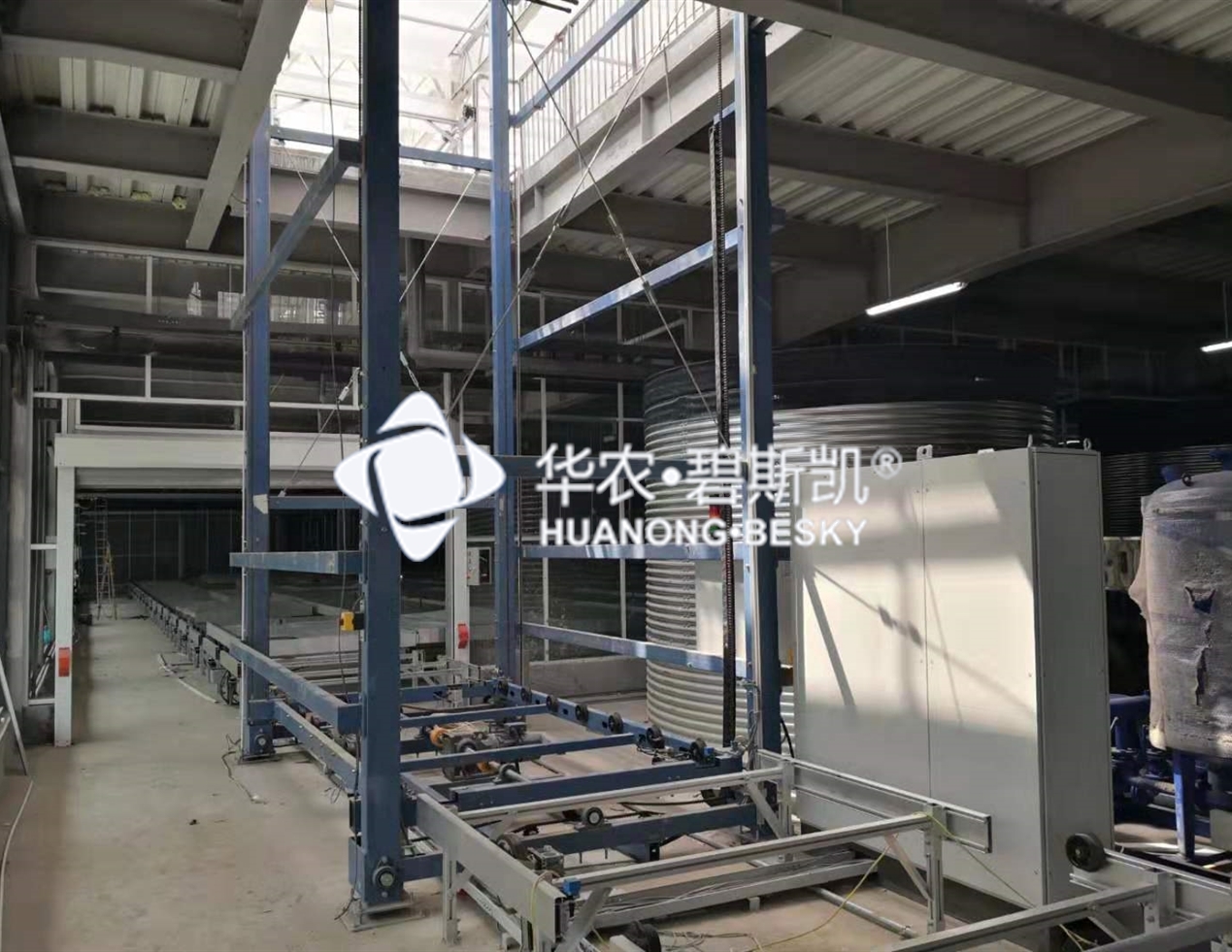 苗床升降机能够解决多层物流栽培系统中苗床多层运输的问题。苗床升降机可以将苗床运输至相应的物流层,且不影响其运动。作业时,苗床沿物流线运动至苗床升降机下方,当苗床不需要去其他物流层时,苗床直接通过升降机继续沿相应物流线运动。当苗床需要运动至其它物流层时,升降机用气缸等专用固定机构限定苗床后,通过提升机构将苗床提升至相应物流层,对接物流路线,输送苗床。