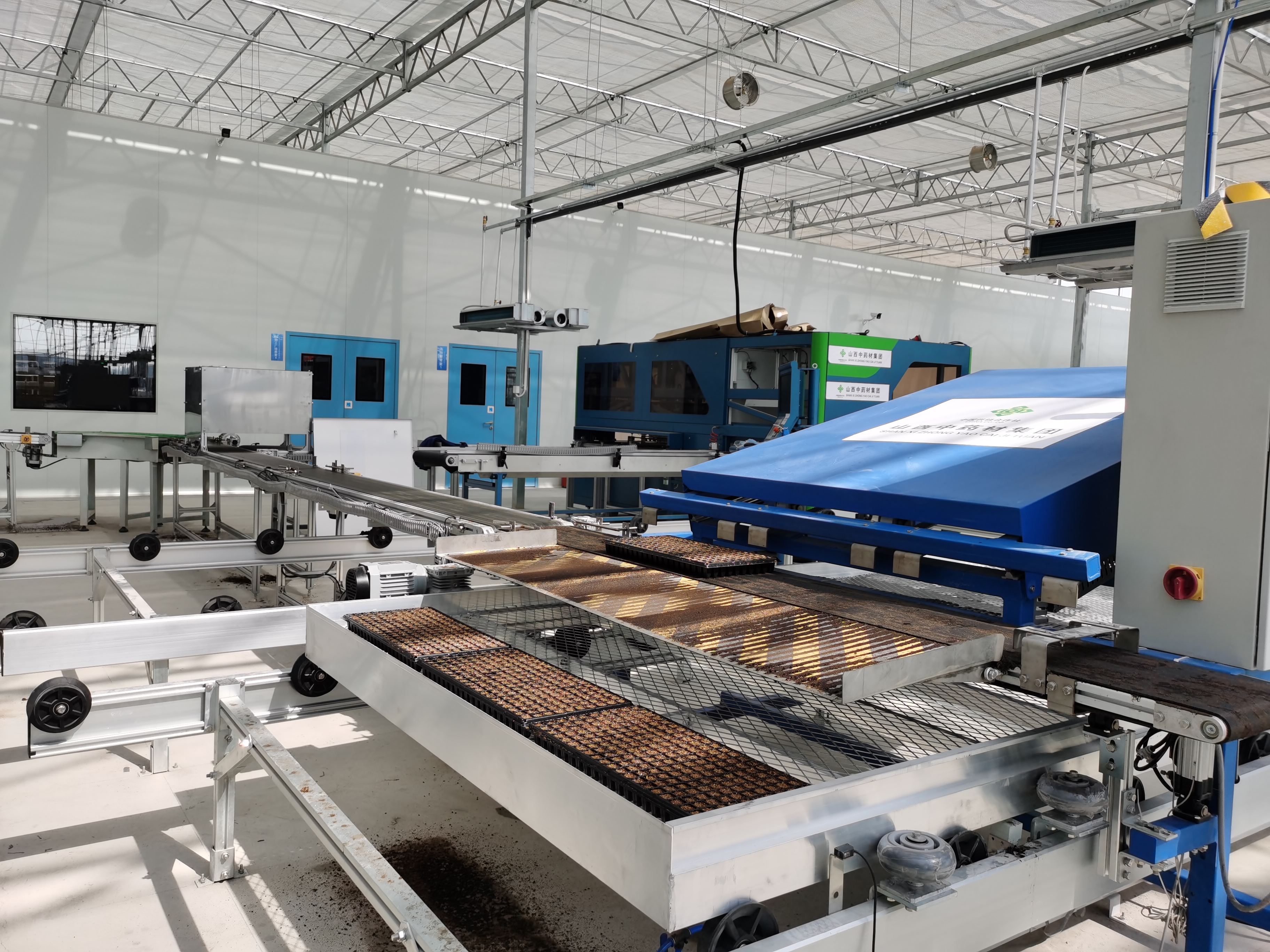 栽培床驱动速度可达0.2m/s,码放速度最大可达500-600盘/h。